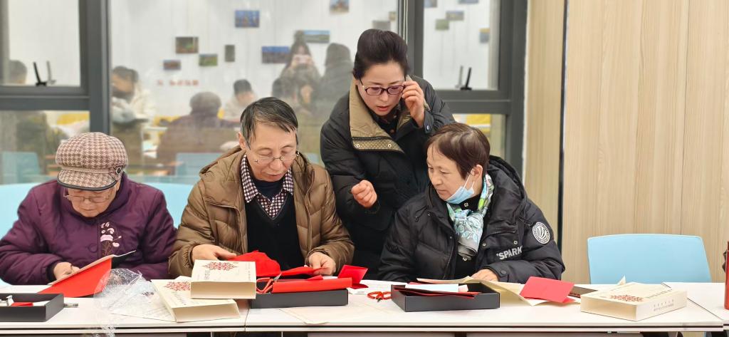随后的实践环节中,候老师耐心指导、亲手示范。居民们兴致盎然,纷纷拿起红纸与剪刀,细心折叠,巧手裁剪。灵动的雪花、喜庆的“喜”字,一幅幅生动图案渐渐呈现,简单的材料在居民手中焕发出别样的艺术生机。大家互帮互助,交流心得,活动现场洋溢着温馨与欢笑。