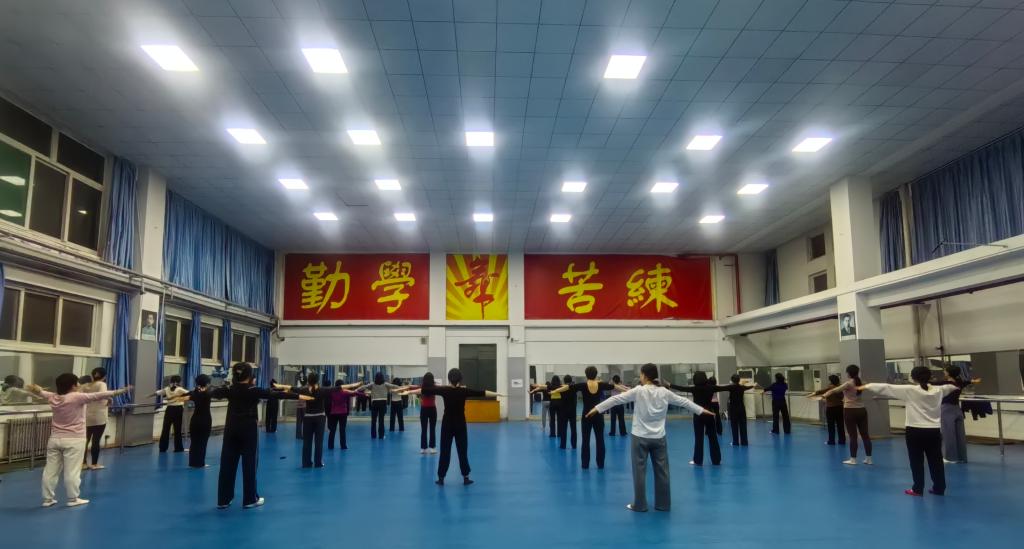 古典舞班则是另一番灵动的景象。伴随着悠扬的古典乐曲,学员们跟随刘陶老师的口令,抬手、转身、移步,每一个动作都力求舒展优美。大家在呼吸与韵律的配合中,体会着身韵结合的东方美学,举手投足间尽显优雅气质。